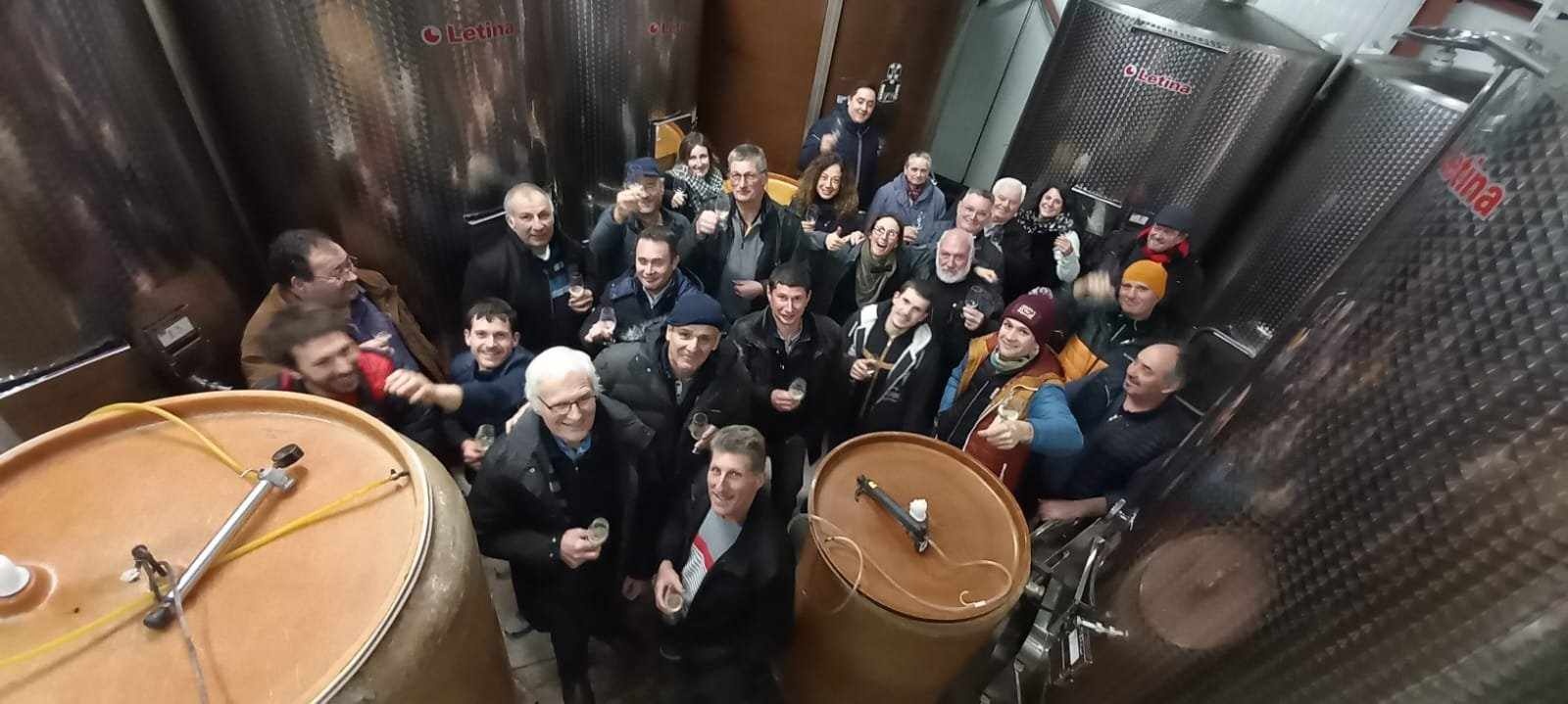 Lorsque les victuailles sont finies et que la température commence à monter nous attaquons une tournée des caves sur le village hôte pour le deuxième grand apéro de la journée avec inspection des cuves et de leur contenant. Un casse-croûte est ensuite sorti sur le coin d'une table composé de charcuteries, fromage et depuis quelques temps d'une fondue ! La journée se finie souvent le lendemain et le 23 janvier se finie généralement par une toute petite journée de travail...